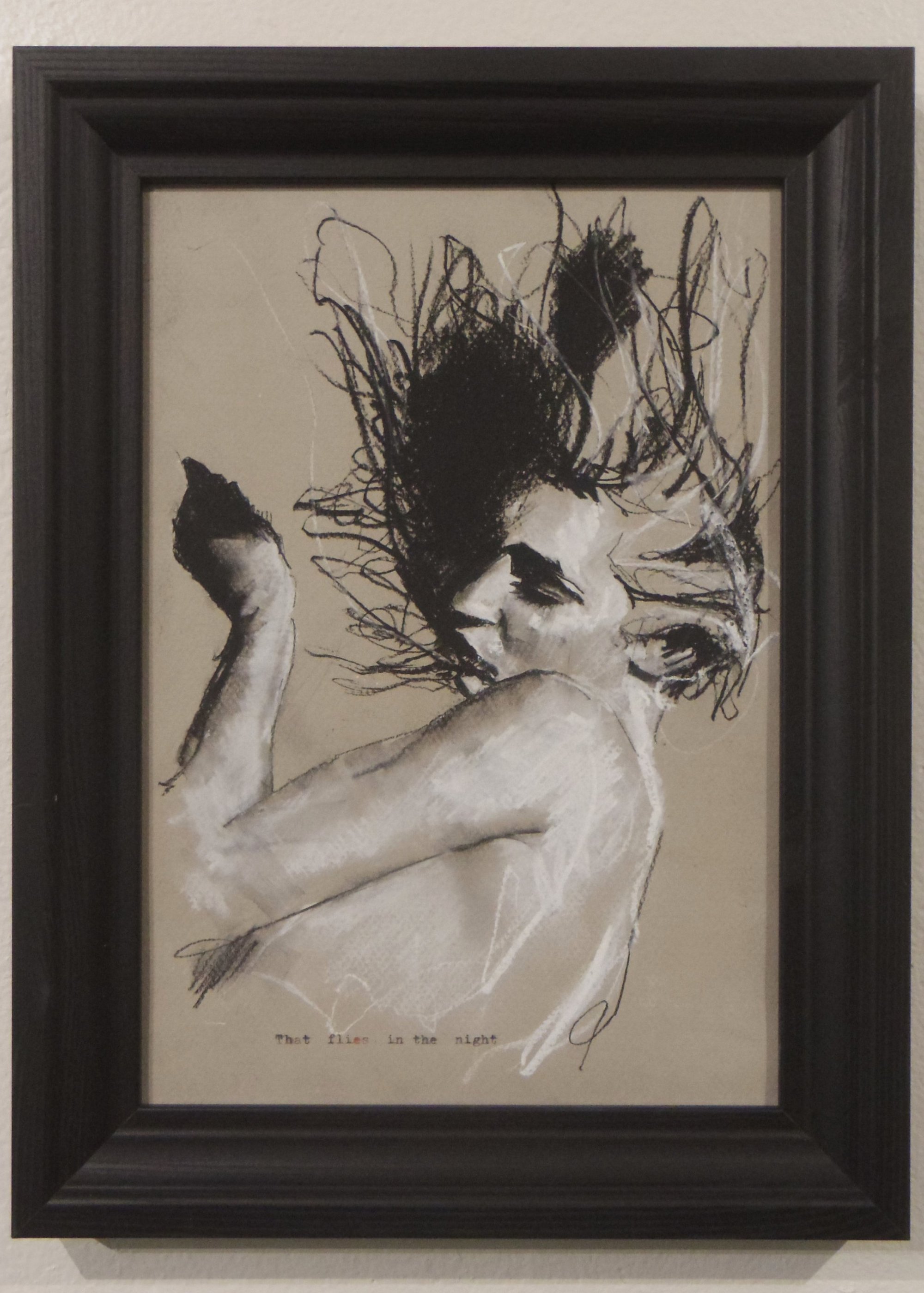 An original drawing made with conte pencil, white pastel and compressed charcoal pastel on 160 gsm (98lb) Canson, pearl grey Mi-Teintes paper. Inspired by the poem 'The Sick Rose' by William Blake.